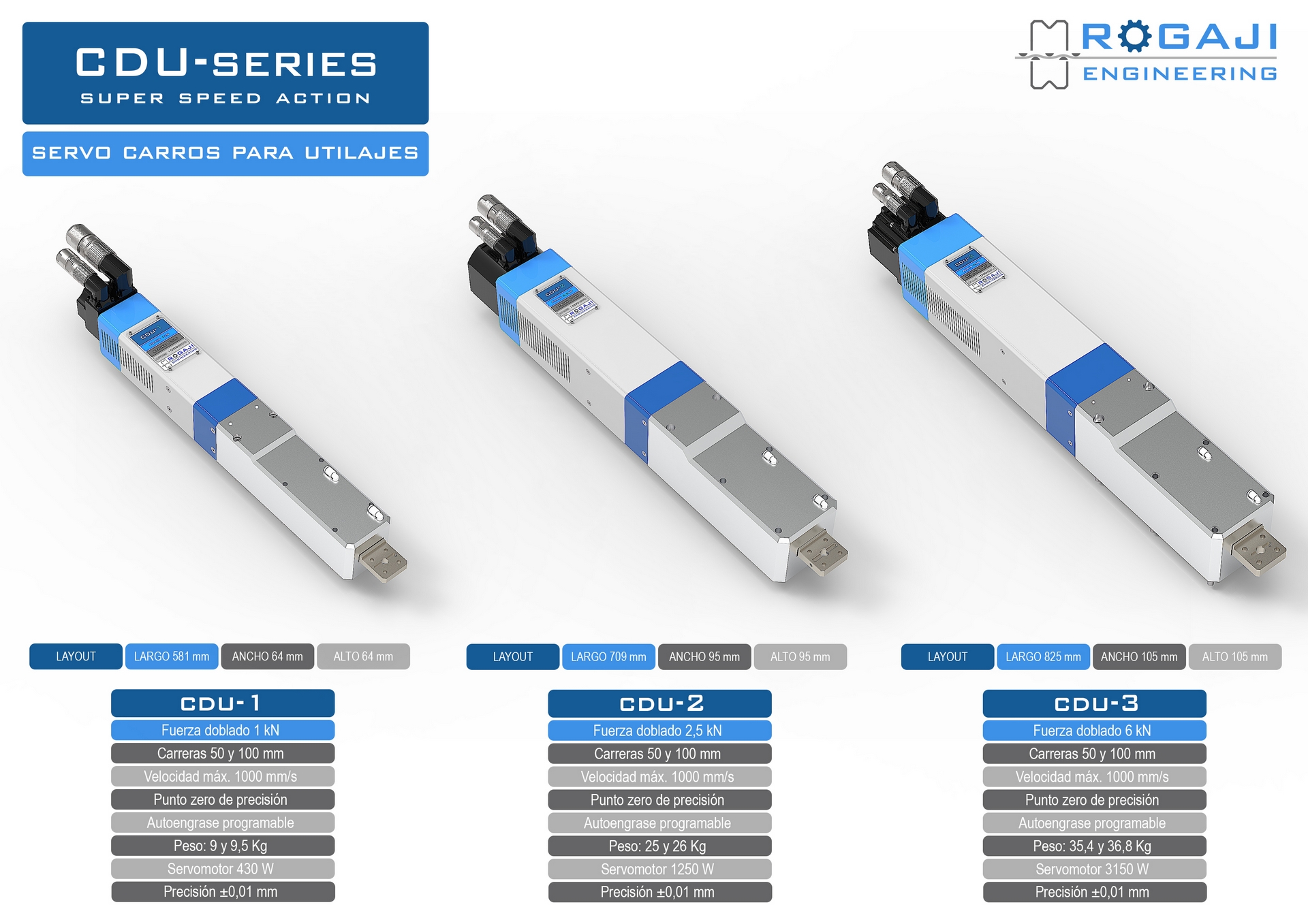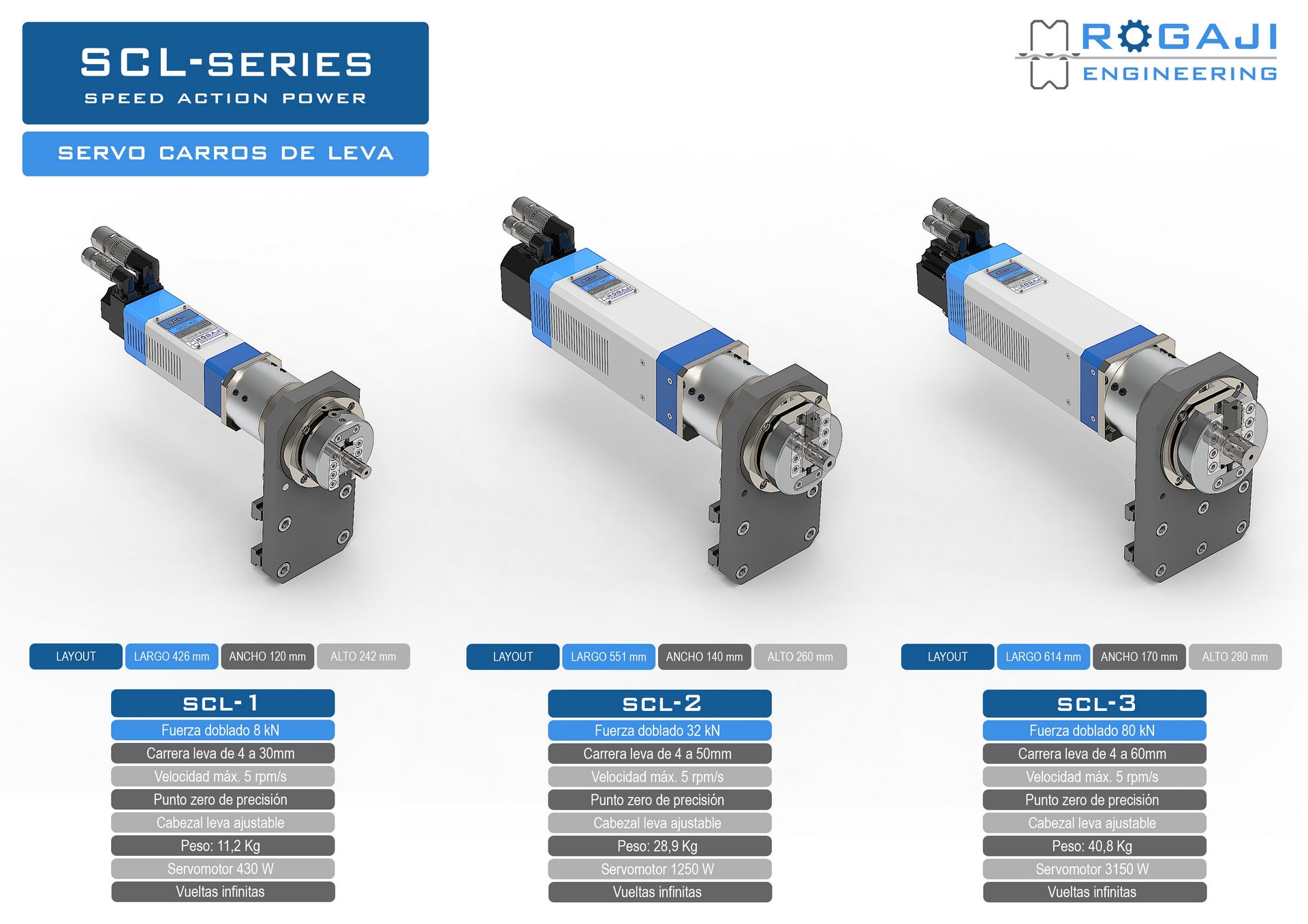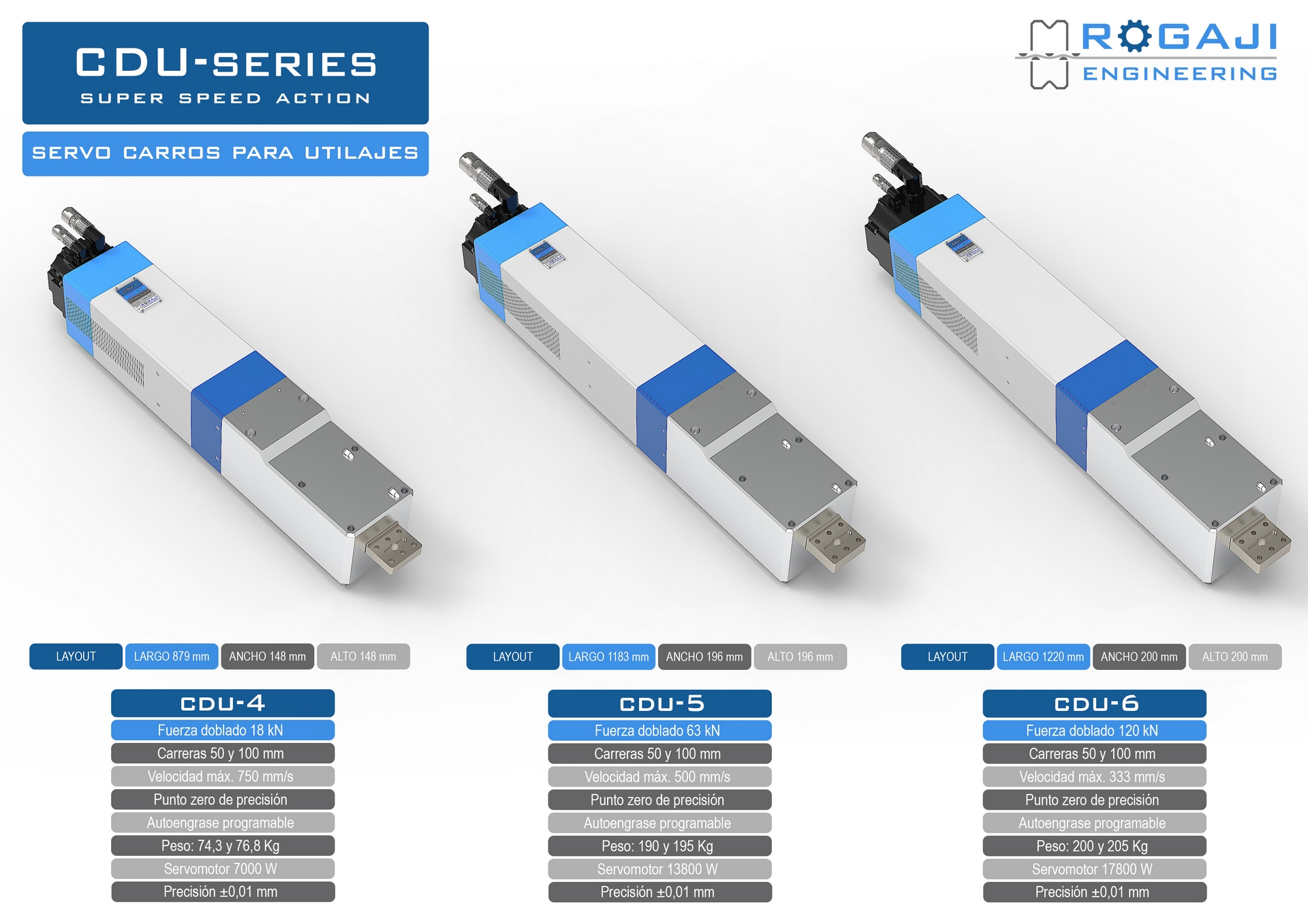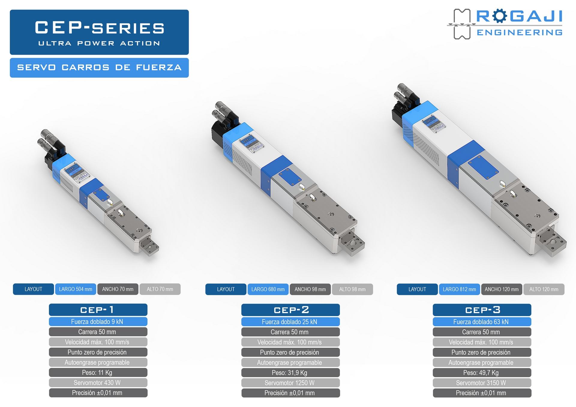 Gracias a su tecnología eléctrica, eliminan cualquier posibilidad de desajuste o pérdida de posición, asegurando así que cada ciclo de trabajo mantenga exactamente las mismas condiciones.